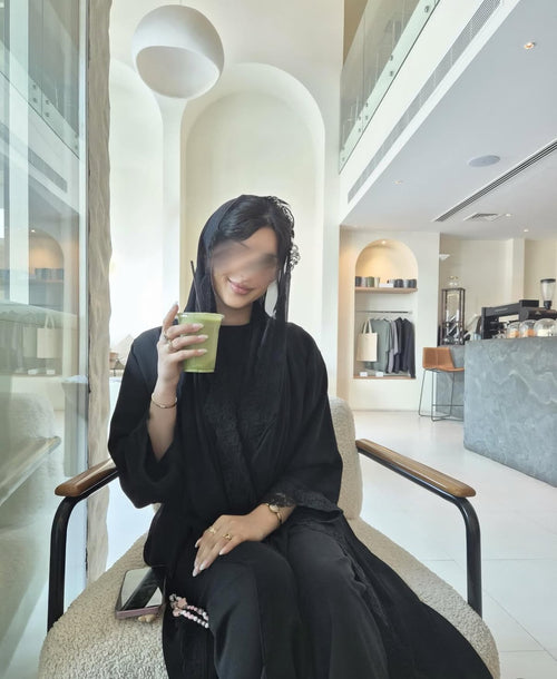 Each abaya is designed with premium fabrics and meticulous stitching to ensure lasting quality. To preserve the beauty of your piece: wear jewellery after putting on your abaya to protect intricate beadwork and lace. Dry clean only (not machine washable), and steam on medium heat rather than ironing—especially important for velvet fabric to prevent fabric damage.